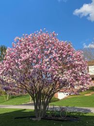 Because of Corona, the younger boys, the little Cavadoodle and I take a walk around the neighborhood every day. They are usually on a scooter or skateboard and I’m usually saying inane things like, “Look at that beautiful purple flower which I don’t know the name of….” We are becoming more in tune with nature and the tiny changes of the season that we would never have noticed had we been in our hectic schedule of gymnastics, hockey, basketball and on and on. It’s a time of growth for us.
