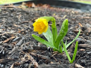 “Want me to throw a knife out the window?” she asked after offering me the chance to pick a bouquet of daffodils. “No, thanks, my fingernails are working just fine,” I replied as I gathered the bright yellow smiling flowers. They sit on my coffee table, a reminder of joy and new life.